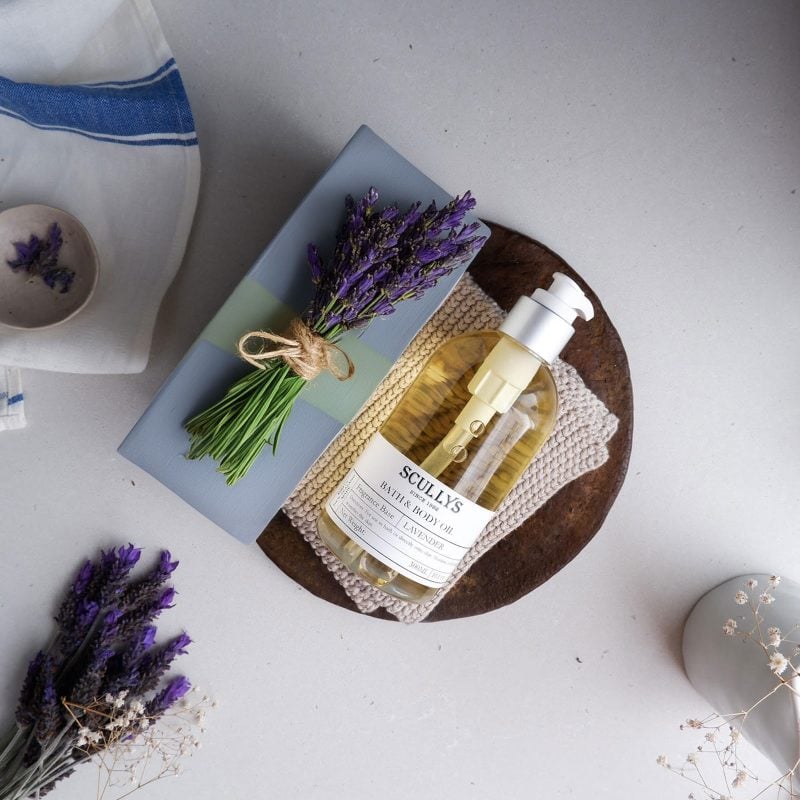 Uleiul de baie și corp Scullys cu lavandă este conceput pentru a hrăni intens pielea și a oferi o experiență relaxantă de îngrijire. Formula sa naturală, îmbogățită cu ulei esențial de lavandă, calmează și purifică pielea, lăsând-o moale, netedă și delicat parfumată. Poate fi utilizat atât direct pe piele pentru masaj și hidratare, cât și adăugat în apa de baie pentru o senzație completă de relaxare. Este potrivit pentru toate tipurile de piele și ideal pentru momentele de răsfăț zilnic. Ingrediente: uleiuri vegetale, ulei esențial de lavandă. Mod de utilizare: aplicați pe piele prin masaj sau adăugați câteva picături în apa de baie. Atenționări: numai pentru uz extern; evitați contactul cu ochii și mucoasele; nu aplicați pe piele iritată sau lezată; a nu se lăsa la îndemâna copiilor.