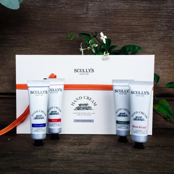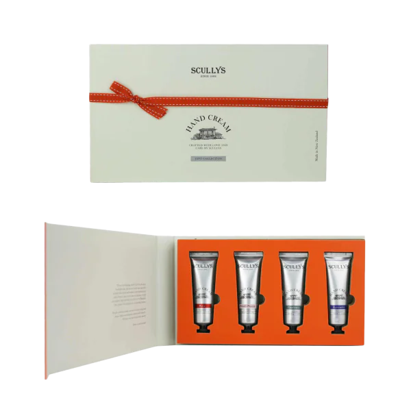 Descoperă cremele noastre clasice de mâini în această cutie cadou cu cele patru parfumuri originale Scullys.
