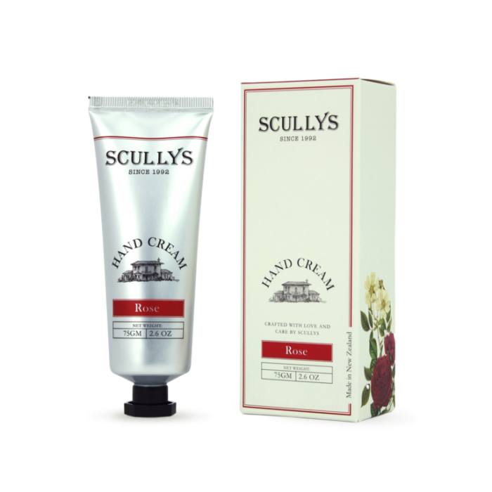 Crema de mâini Scullys cu trandafir hidratează intens și protejează pielea împotriva uscăciunii, redând finețea și elasticitatea mâinilor. Formula sa delicată, îmbogățită cu ulei esențial de trandafir, se absoarbe rapid fără a lăsa urme grase și lasă pielea plăcut parfumată cu un miros floral elegant. Ambalajul practic în tub o face ușor de utilizat acasă, la birou sau în călătorii. Ingrediente: bază hidratantă, ulei esențial de trandafir, parfum. Mod de utilizare: aplicați o cantitate mică pe mâini și masați până la absorbția completă. Atenționări: numai pentru uz extern; evitați contactul cu ochii; nu aplicați pe piele iritată sau lezată; a nu se lăsa la îndemâna copiilor.