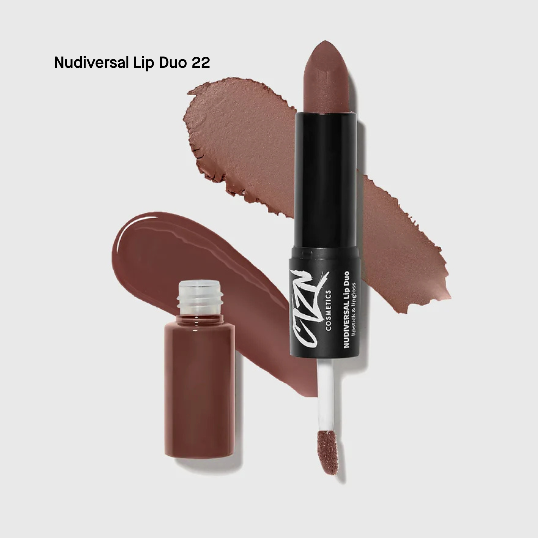 Doar doi pași vă despart de buzele cu cel mai seducător aspect. Rujul 2 în 1 CTZN Nudiversal Lip Duo are un capăt cu ruj matifiant care îmbracă buzele într-o textură mătăsoasă, cu aspect catifelat și un capăt cu luciu de buze care conferă strălucire reflectorizantă și o culoare grozavă. Infuzat cu unt de mango, produsul menține buzele hrănite, în timp ce le repară și le protejează de stresul climatic. Purtate împreună sau separat, rujul și luciul de buze oferă un aspect de invidiat și completează perfect orice machiaj.